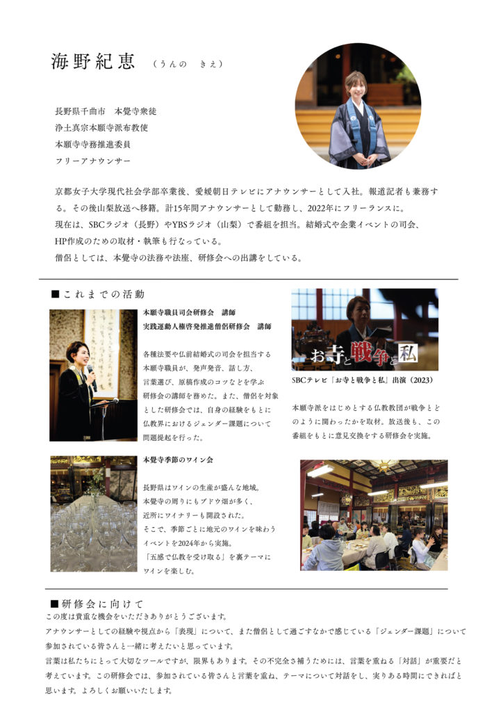 ・海野紀恵(長野教区川中島組本覚寺衆徒・フリーアナウンサー・本願寺寺務推進委員・本願寺派布教使)