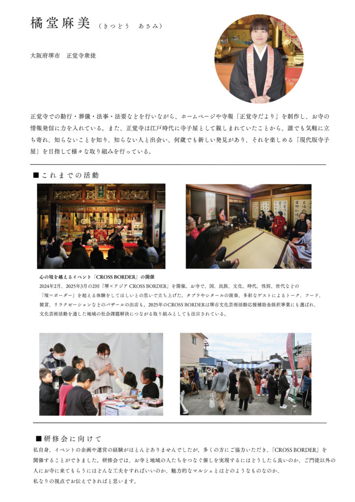 お寺で新たな挑戦を始めている正覚寺の話をしながら、麻田弘潤さんから20年間取り組み続けた寺院運営の現在、海野さんからジェンダーやコミュニケーションの基本などをお伝えできたらと思います。